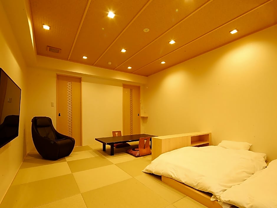 The family room includes a private bathroom, well-fitted with a bath, a shower, a bidet, a hairdryer and slippers. The family room offers air conditioning, tatami, a wardrobe, an electric kettle, as well as a flat-screen TV. The unit offers 2 futons.